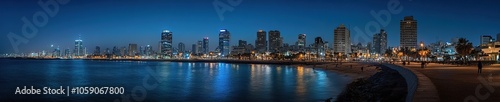 © herman, Naklejka premium panoramic photo of the city skyline at night