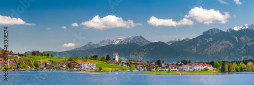 © Wolfilser, Naklejka premium panoramic scene with rural landscape and mountain range in Bavaria, germany