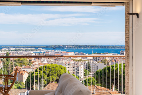 © Jeremi MARIE, Obraz premium Panoramic sea view from luxury apartment balcony on the French Riviera