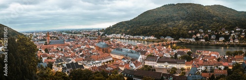 Fototapeta premium Panoramic shot of a beautiful city with a river and mountains surrounding it