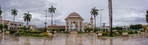 © Wirestock, Fototapeta premium Panoramic shot of the Glorieta de Manzanillo park under a cloudy sky in Manzanillo, Cuba.