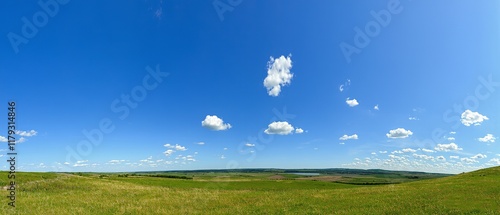 Fototapeta premium Panoramic sky on a sunny day provides a wide, clear view of nature's open...