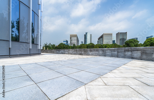 © hallojulie, Fototapeta premium Panoramic skyline and buildings with empty square floor.