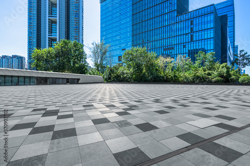 © hallojulie, Fototapeta premium Panoramic skyline and buildings with empty square floor.