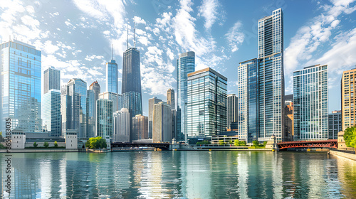 Fototapeta premium Panoramic skyline and buildings with many glass windows