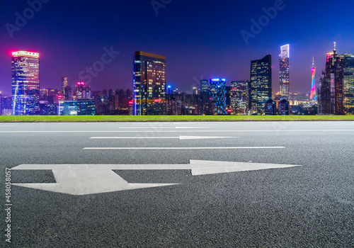 Obraz premium Panoramic skyline and empty asphalt road with modern buildings