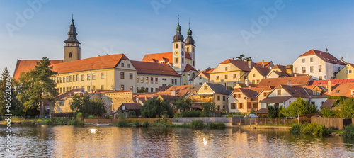 Fototapeta premium Panoramic skyline of historic town Telc in the evening light, Czech Republic