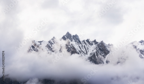 Obraz premium Panoramic snow mountain with white cloudy sky