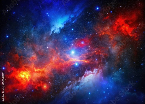 Fototapeta premium Panoramic Starry Night, Red Blue Frame, Cosmic Landscape, Galaxy Photography, Celestial Art