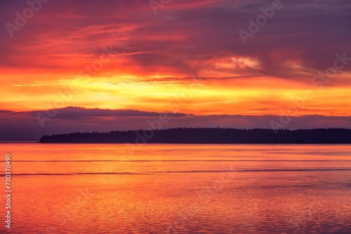 © Lisa, Naklejka premium Panoramic Sunrise Glowing Over The Ocean