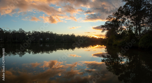 Obraz premium Panoramic Sunrise Over River