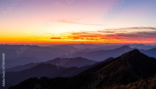Obraz premium Panoramic sunset over mountain ranges