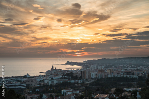 Obraz premium Panoramic sunset view of Sitges, Spain