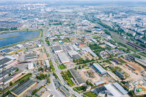 © Mr Twister, Fototapeta premium panoramic top view of industrial zone. city suburbs with different plants, manufactures, logistic centers