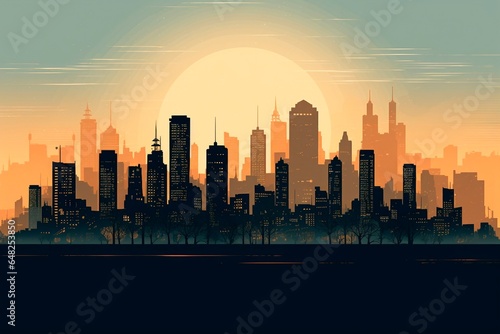 © 015EARTH, Obraz premium Panoramic vector city skylines. AI Generated