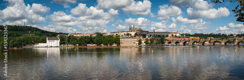 © Souvik, Naklejka premium Panoramic view above at Charles Bridge Prague Castle and river Vltava Prague Czech Republic.
