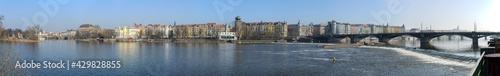 Naklejka premium Panoramic view along Vltava river towards Smetanovo, embankment, Prague, Czech.