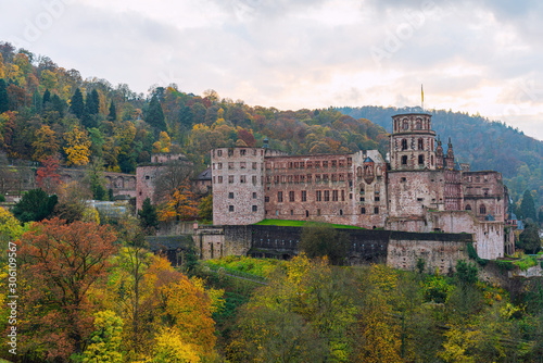 Naklejka premium Panoramic view and the castle of Heidelberg city in Germany.