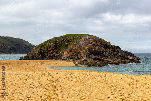 © A.N.Foto, Fototapeta premium panoramic view around the famous, murder hole beach in ireland at a cloudy windy summer day