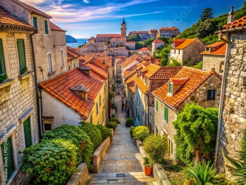 © Adisorn, Obraz premium Panoramic View: Charming Cobblestone Streets of Dubrovnik Old Town