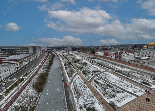 © константин константи, Naklejka premium panoramic view from a drone on the historical part of the city of Tula on a winter day