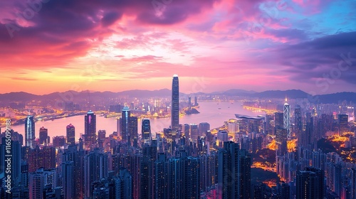 © WS Studio 1985, Fototapeta premium Panoramic View from Conference Office Room Overlooking Cityscape