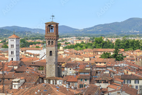 Fototapeta premium Panoramic view from Guinigi tower (Torre Guinigi) towards Torre delle Ore...