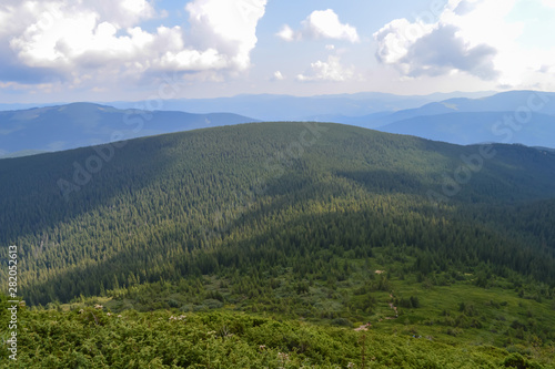 Fototapeta premium Panoramic view from Hoverla, Carpathian mountains, Ukraine. Horizontal outdoors shot