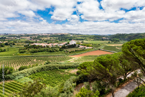 © asife, Fototapeta premium Panoramic view from the castle of the cultivated fields of Óbidos