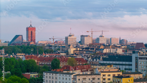 Obraz premium Panoramic view from the drone on the city Poznan. Poland.