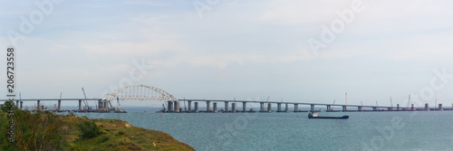 Naklejka premium Panoramic view from the Kerch coast to the Crimean bridge connecting the...