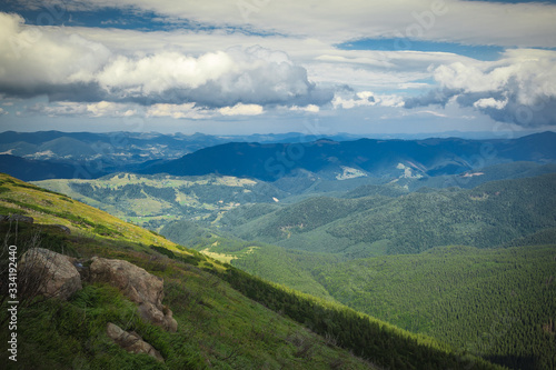 © lobodaphoto, Naklejka premium Panoramic view from the mountain to the valley
