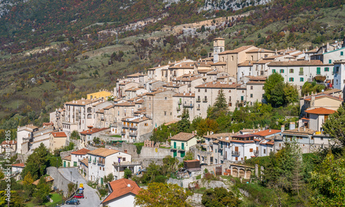© e55evu, Naklejka premium Panoramic view in Barrea, province of L'Aquila in the Abruzzo region of Italy.