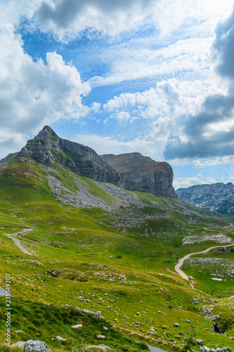 Fototapeta premium Panoramic view in Durmitor, Montenegro. Mountain road.