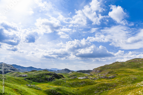 Obraz premium Panoramic view in Durmitor, Montenegro. Mountain road.