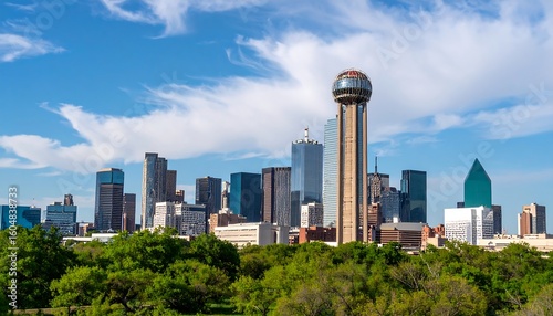 © diinulkha, Fototapeta premium Panoramic view of a bustling city skyline under a vibrant blue sky