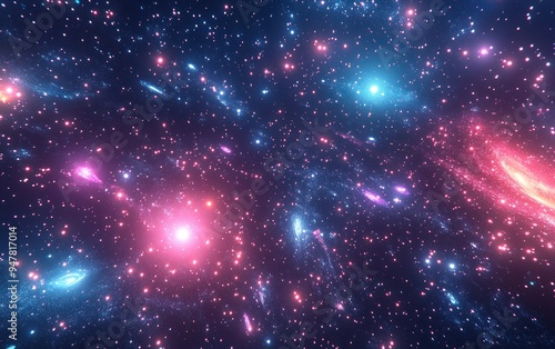 Obraz premium Panoramic view of a galaxy and stars in 3D cartoon rendering Abstract space...