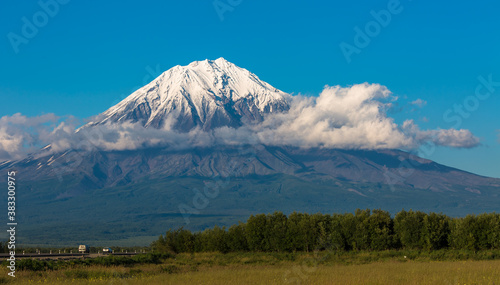 © Вячеслав Иванов, Fototapeta premium Panoramic view of a large volcano with a snowy peak