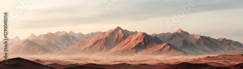 Naklejka premium Panoramic view of a mountain range with a misty valley. Landscape of...