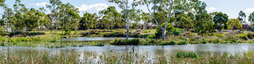 Obraz premium Panoramic view of a natural wetland in Manor Lakes, Melbourne, Australia,...
