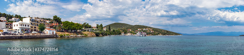 Fototapeta premium Panoramic view of a small beach and port Mitzela, Amaliapoli, Greece.
