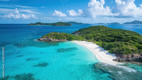 © Devi, Fototapeta premium Panoramic view of a tropical island paradise.