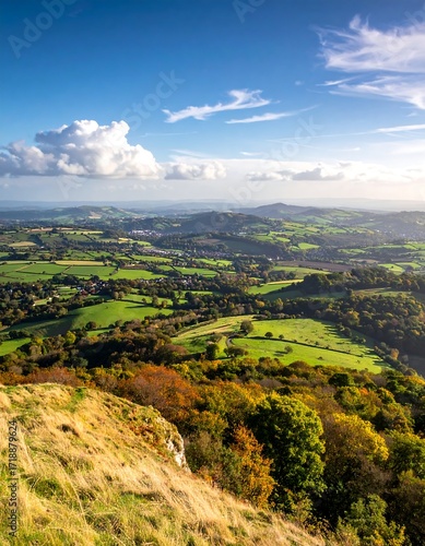 © ELL, Obraz premium Panoramic view of a valley with autumnal colors