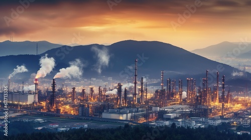 Fototapeta premium Panoramic view of a vast industrial complex. Generative ai.