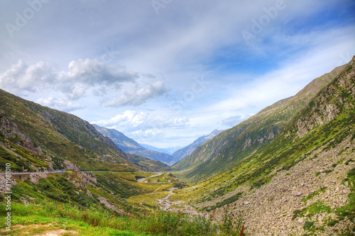© Roman, Fototapeta premium Panoramic view of alpine valley, Switzerland, Europe.