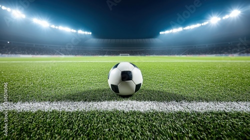 Obraz premium Panoramic View of an Empty Soccer Stadium at Night with Bright Lights