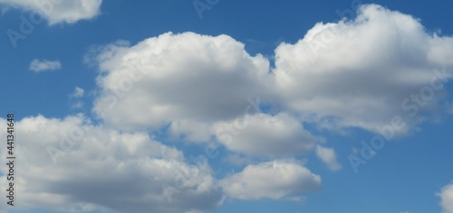 © natalya2015, Naklejka premium Panoramic view of beautiful clouds blue sky, natural background