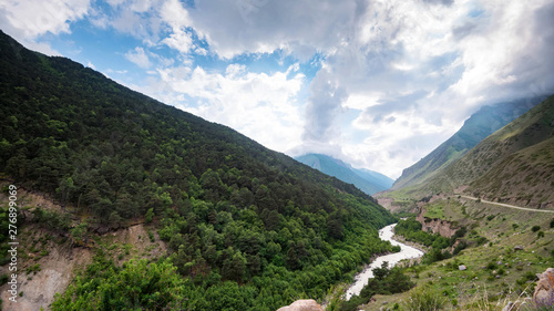 © Yakov, Fototapeta premium Panoramic view of beautiful mountains and river in northern caucasus in summer
