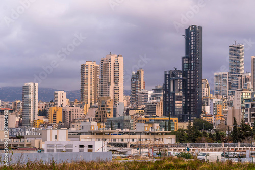 Fototapeta premium Panoramic view of Beirut, Lebanon, showcasing downtown and districts...