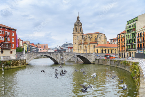 Naklejka premium panoramic view of bilbao old town with san Anton church at background, Spain